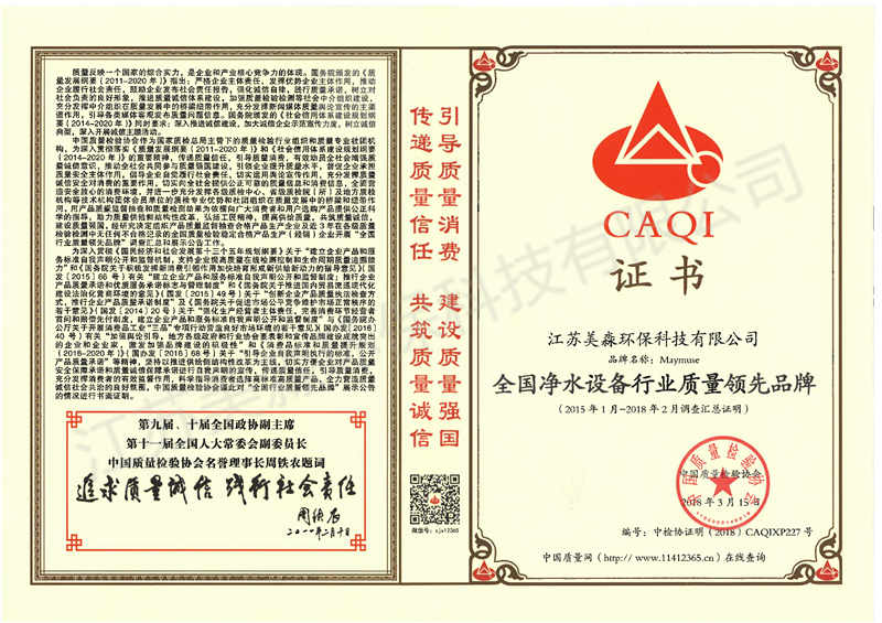 全系列產品獲得了CE和UL等歐美權威機構認證,中國衛生部涉水產品衛生許可批件以及CQC認證。